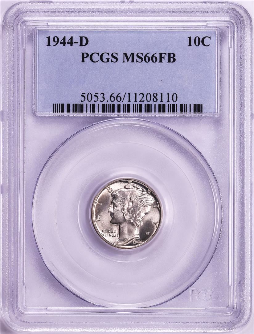 One 1944-D Mercury Dime Coin PCGS MS66FB. PCGS Graded.