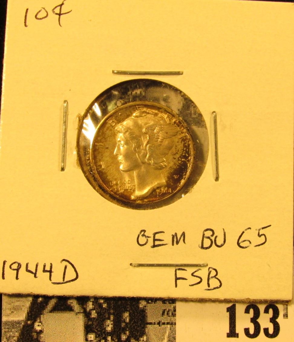 1944 D Mercury Dime GEM BU 65 FSB. Superb original toning.