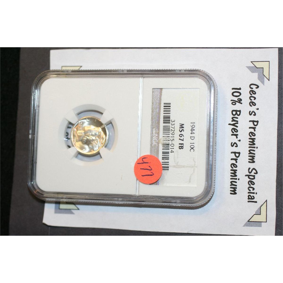 1944-D Mercury Dime, NGC Graded MS67 FB **CeCe's Premium Special 10% Buyer's Premium-This Lot Only!**