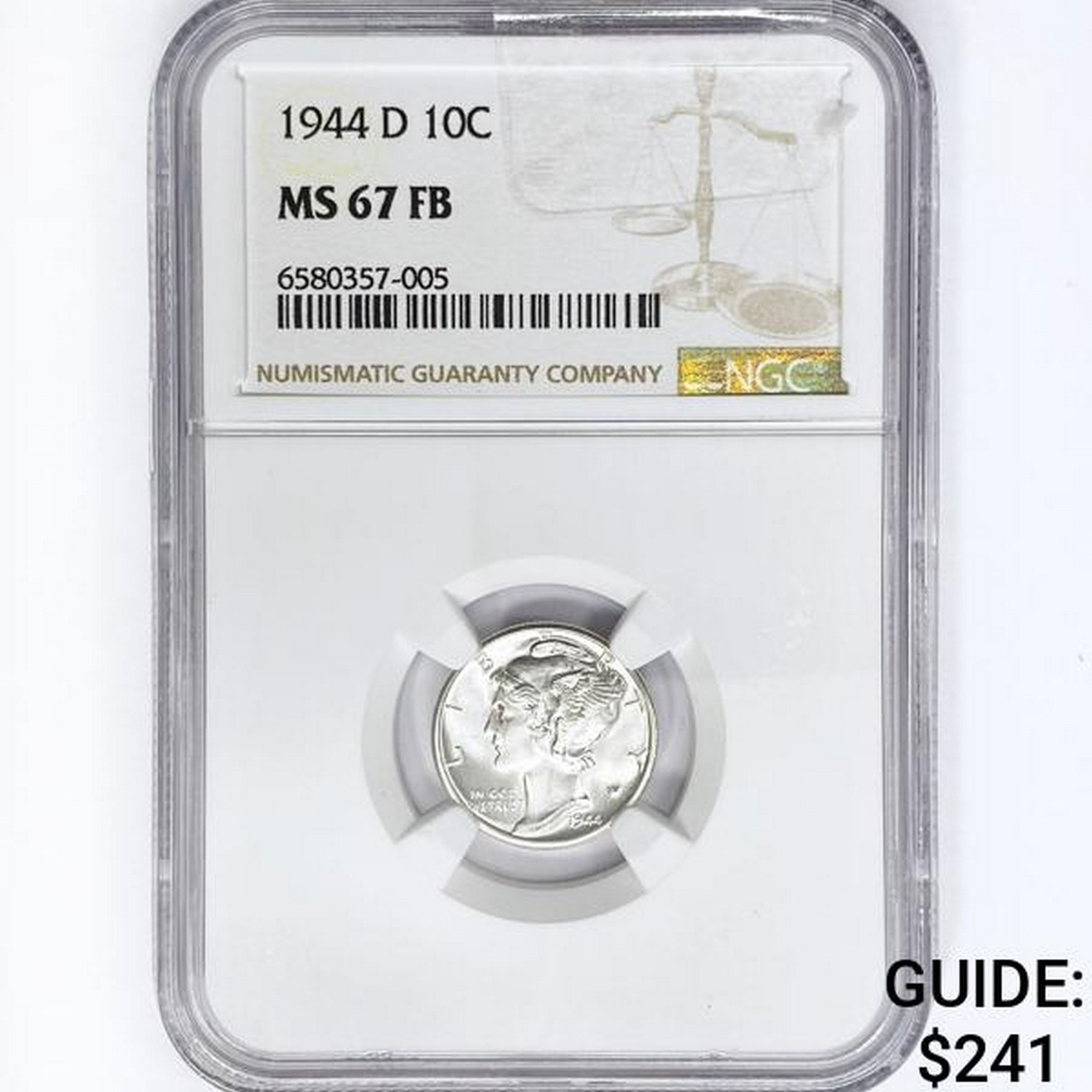 1944-D Mercury Silver Dime NGC MS67 FB
