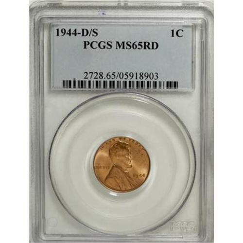 <B>1944-D/S 1C MS65 Red PCGS.</B></I> FS-020, OMM-1, the better variety. The design elements are exquisitely struck up on this Red Gem, and the lustrous surfaces display attractive orange-gold color. A few light toning spots do not take away from the coin's overall eye appeal. Population: 18 in 65 Red, 7 finer (8/07).<BR><BR><B>Coin Engraver:</B> Victor D. Brenner<BR><BR><b>Shipping:</b> Coins & Currency (<a target="_blank" href="http://www.heritageauctions.com/common/shipping.php">view shipping information</a>)