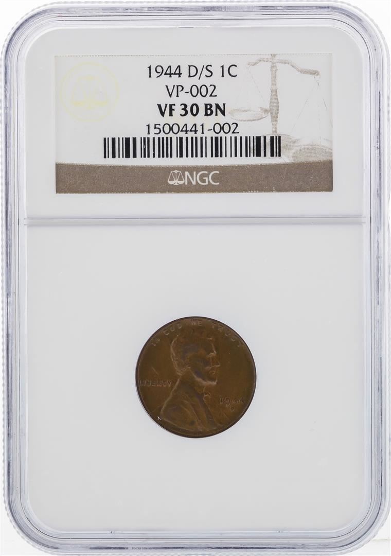 One 1944-D/S Lincoln Cent VP-002 Coin NGC VF 30 BN. NGC Certified.