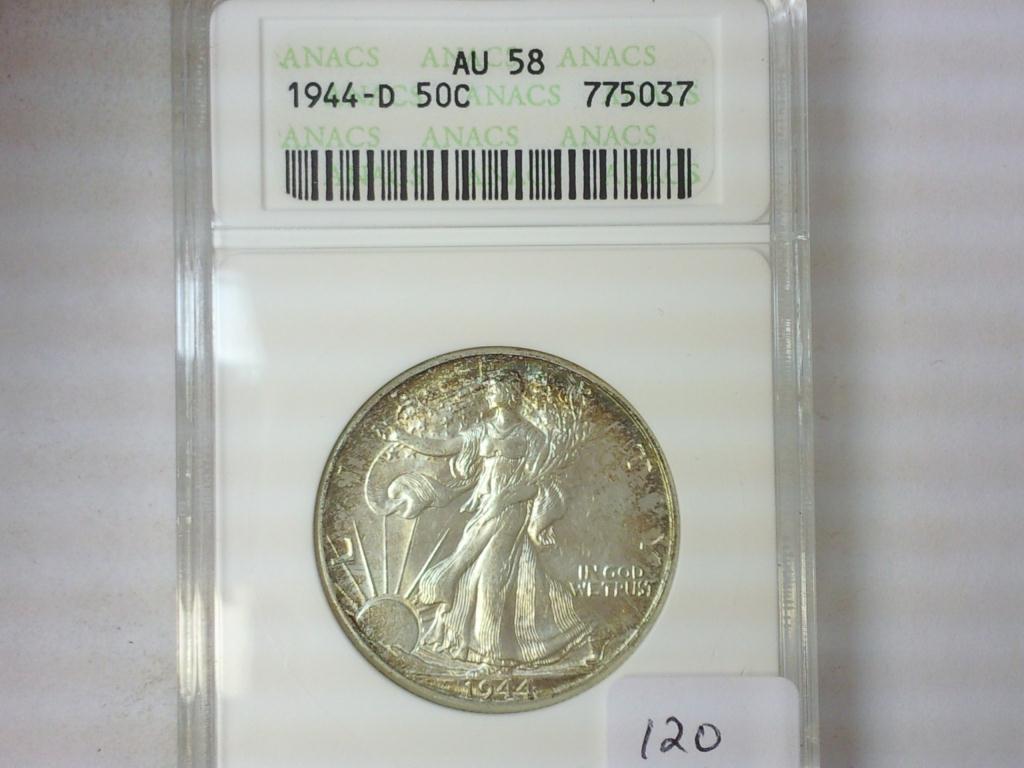 1944-D WALKING LIBERTY HALF DOLLAR ANACS (AU58)
