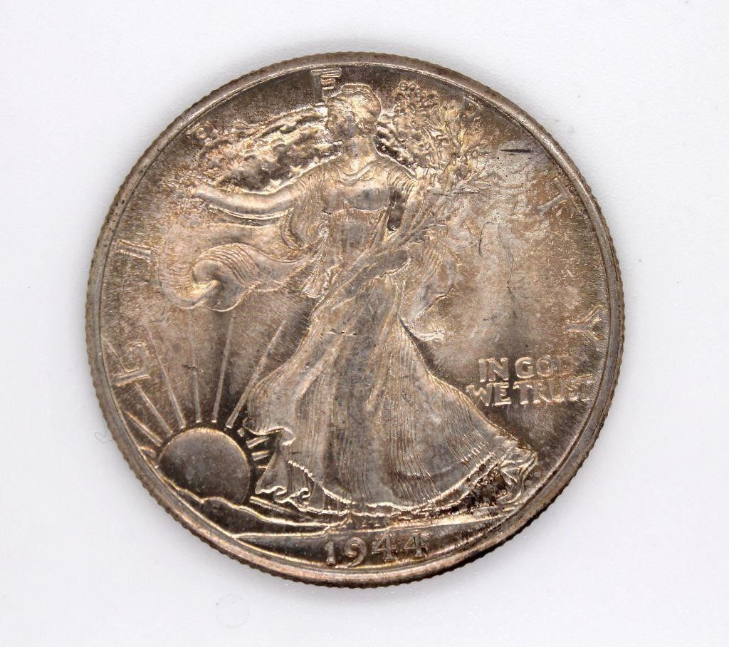 A 1944 D WALKING LIBERTY HALF DOLLAR in Gem BU condition. Superb luster and surfaces with some pretty light toning. Super Nice!