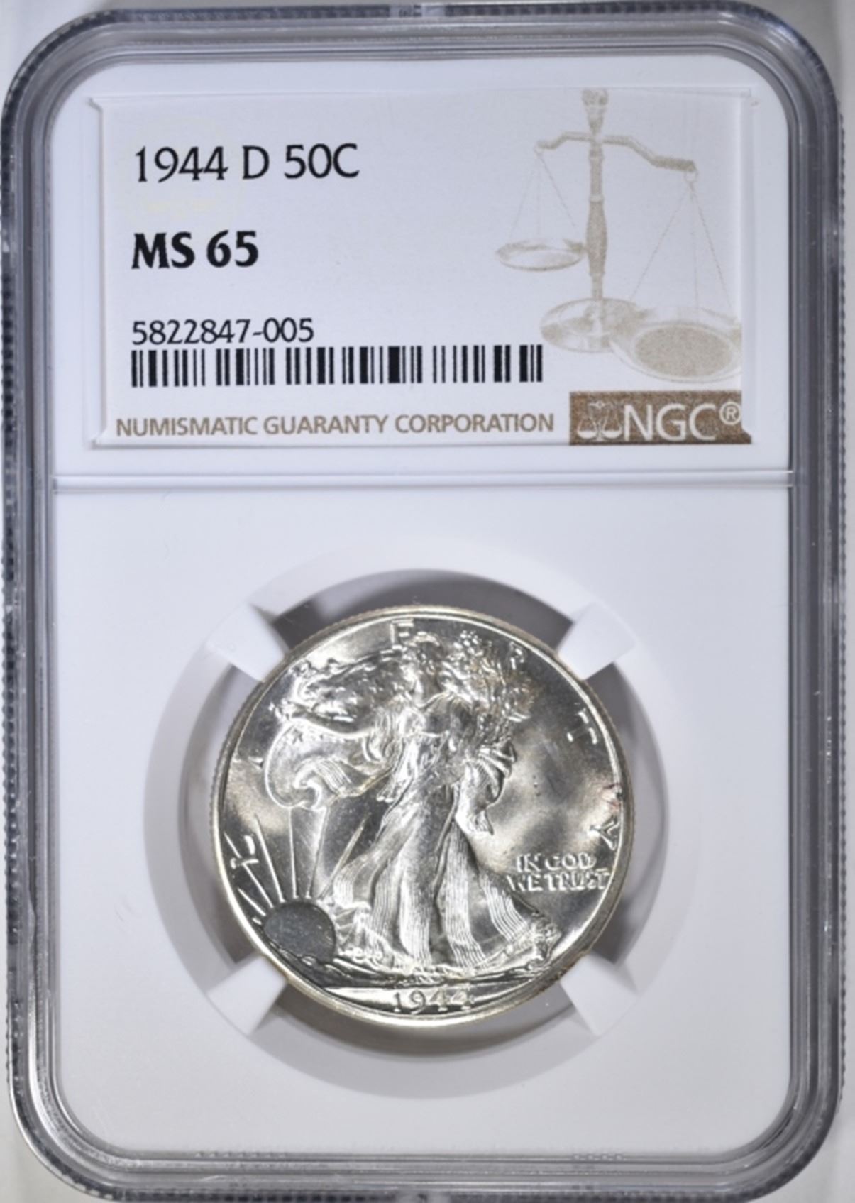 1944-D WALKING LIBERTY HALF DOLLAR, NGC MS-65