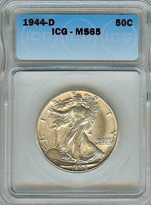 1944-D WALKING LIBERTY SILVER 50 CENTS ICG MS65