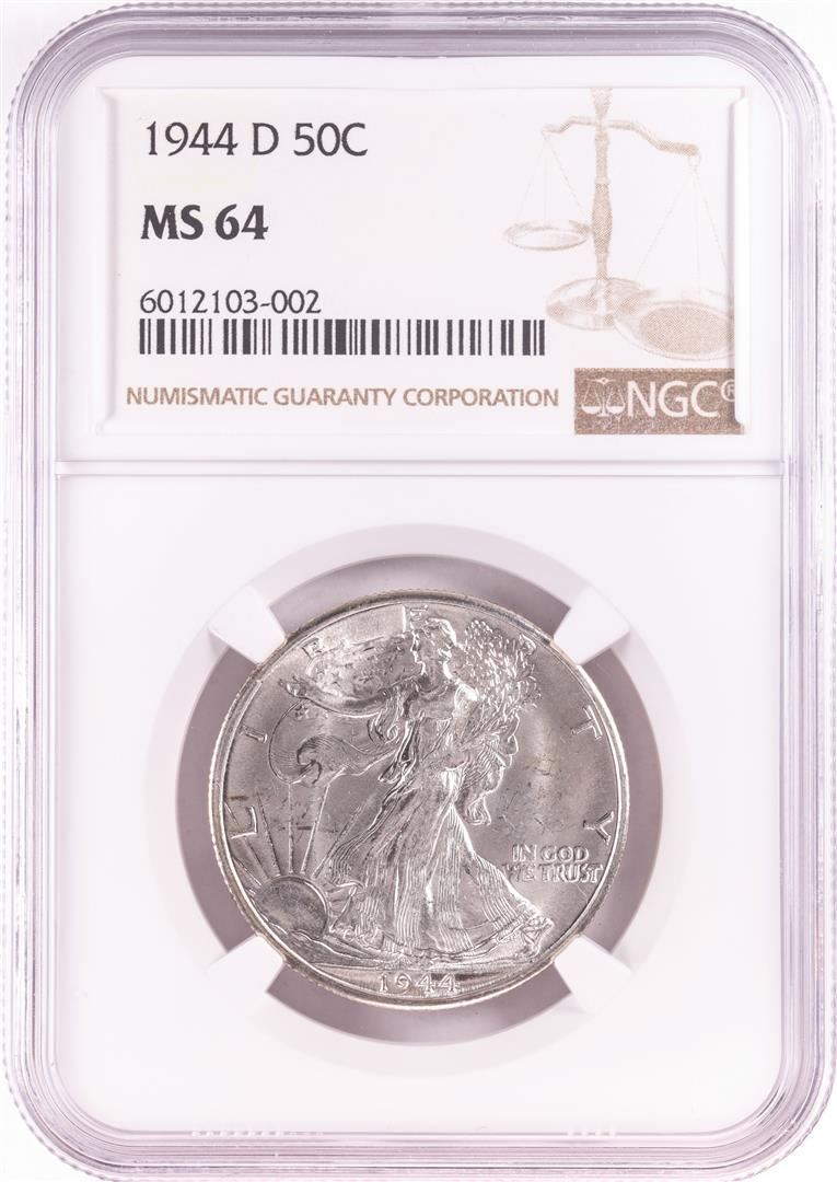 One 1944-D Walking Liberty Half Dollar Coin NGC MS64. NGC Certified.