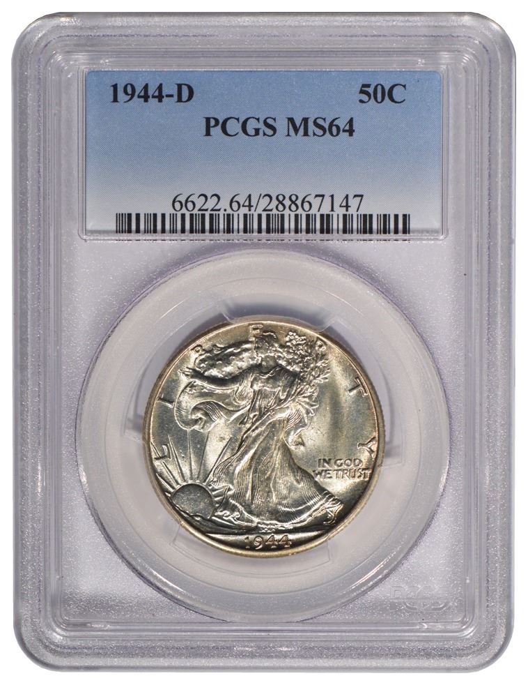 One 1944-D Walking Liberty Half Dollar Coin PCGS MS64.