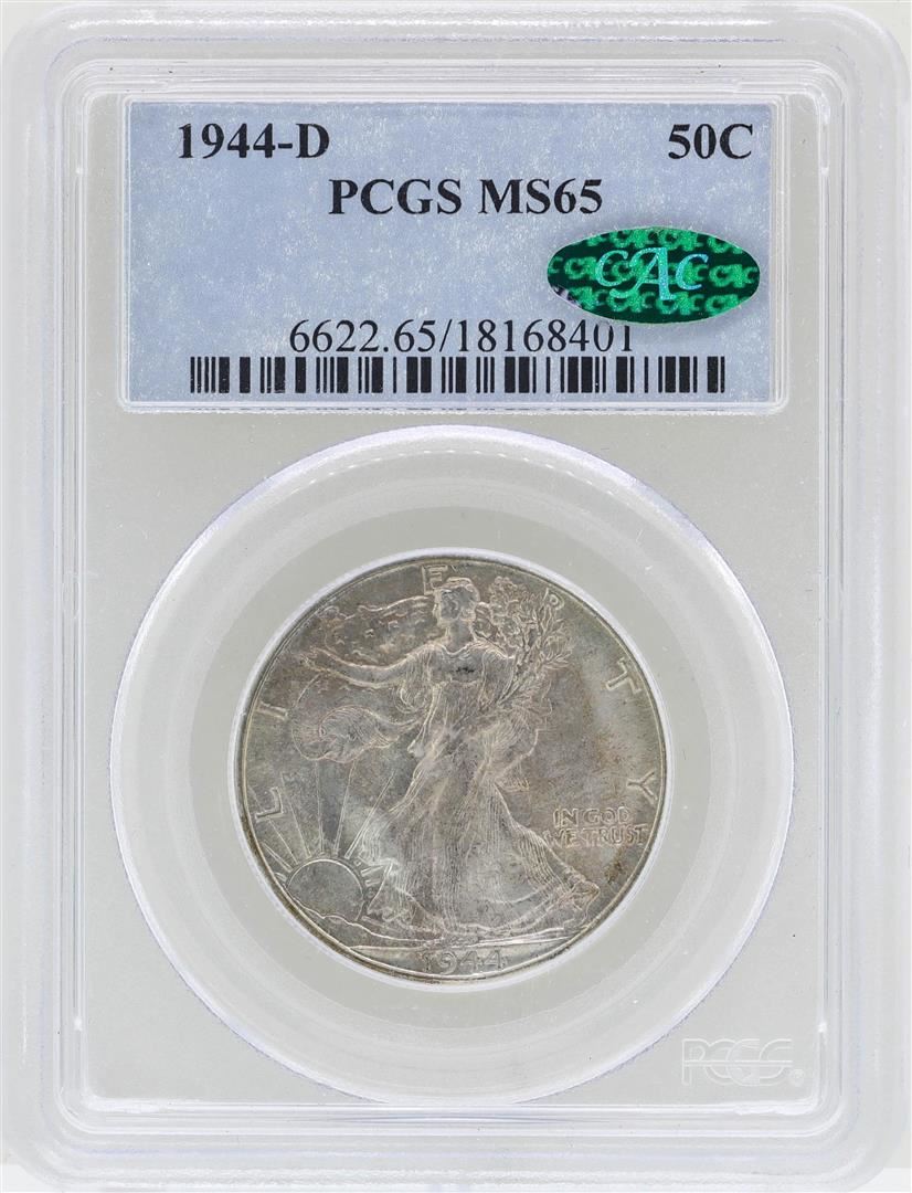One 1944-D Walking Liberty Half Dollar Coin PCGS MS65 CAC. PCGS Certified.
