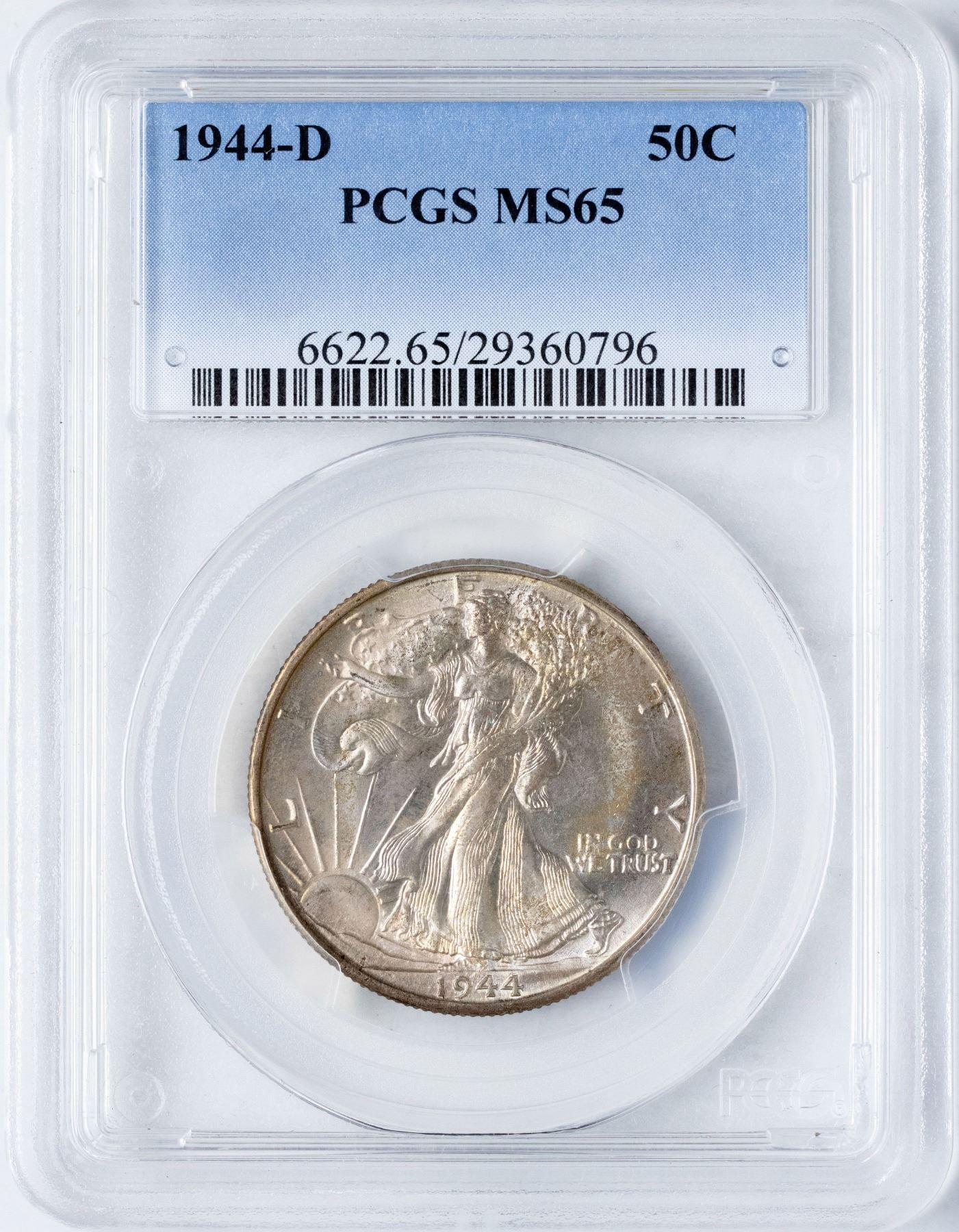 One 1944-D Walking Liberty Half Dollar Coin PCGS MS65.