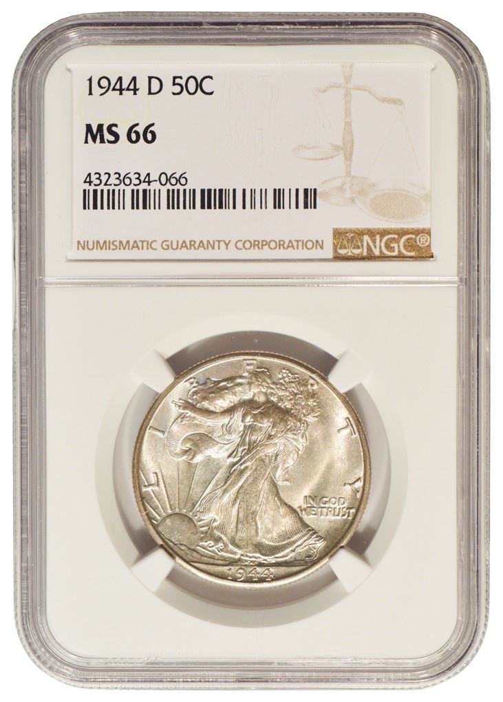 One 1944-D Walking Liberty Half Dollar NGC MS66.