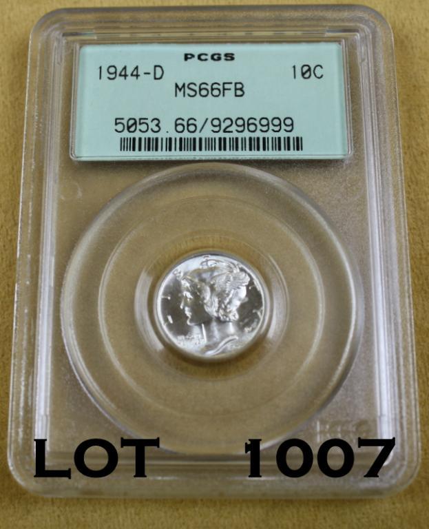 1944-D mercury dime, PCGS graded MS66 full band. An exceptional coin. Est: $90 - $180