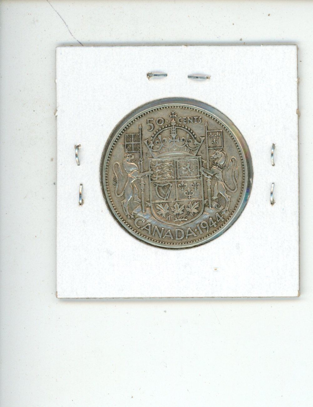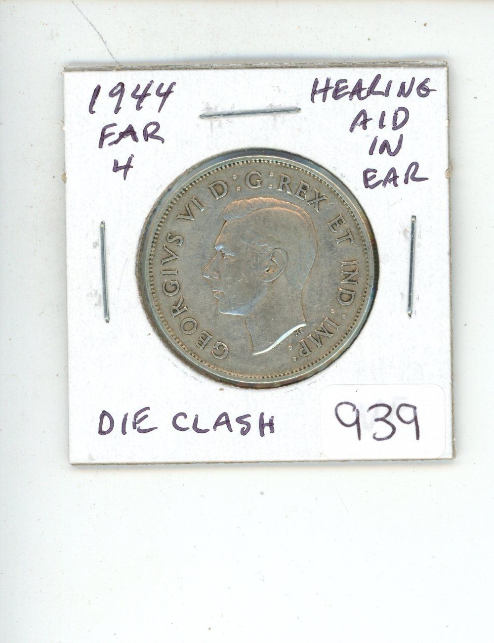 1944 Far 4 George VI Silver 50 Cents. Hearing Aid in King’s Ear from Die Clash. VF-20.