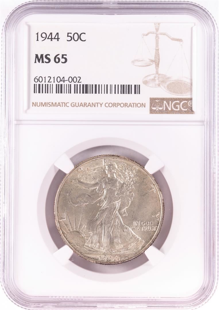 One 1944 Franklin Half Dollar Coin NGC MS65. NGC Certified.