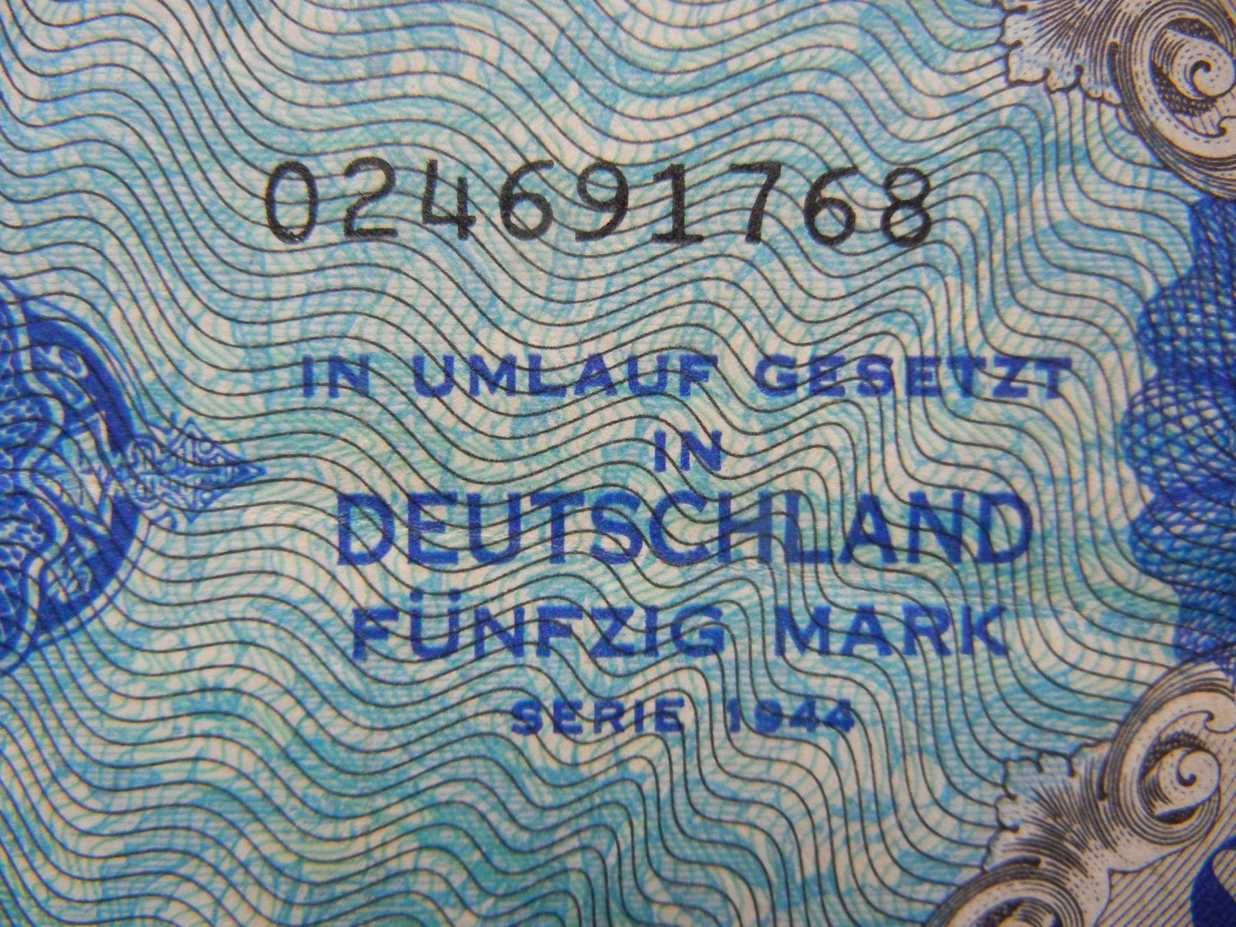 1944 German 50 Mark Military Currency Note.  Serial # 024691768.