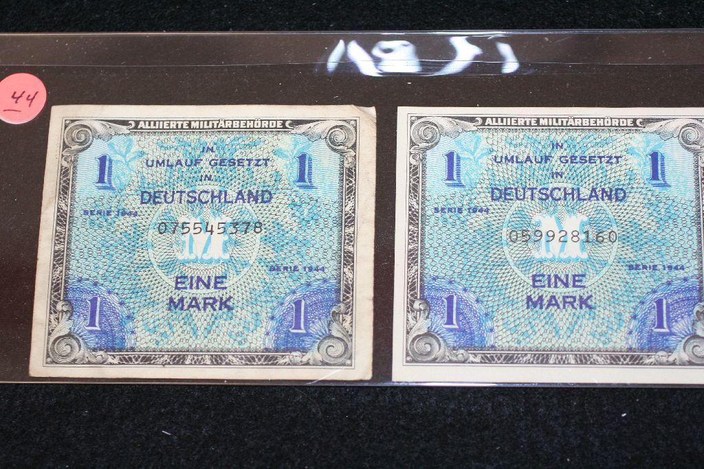 1944 German Eine Mark Allied Military Authority Foreign Note, Lot of 2