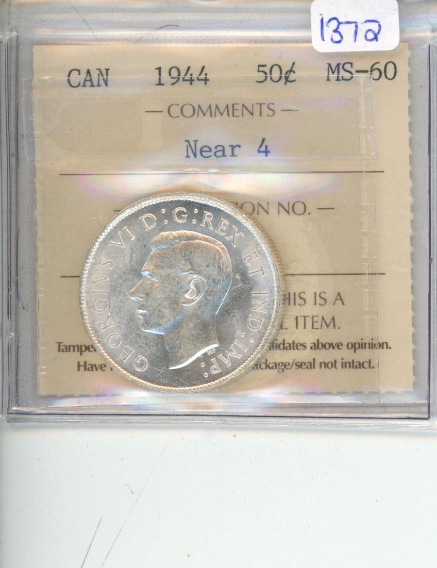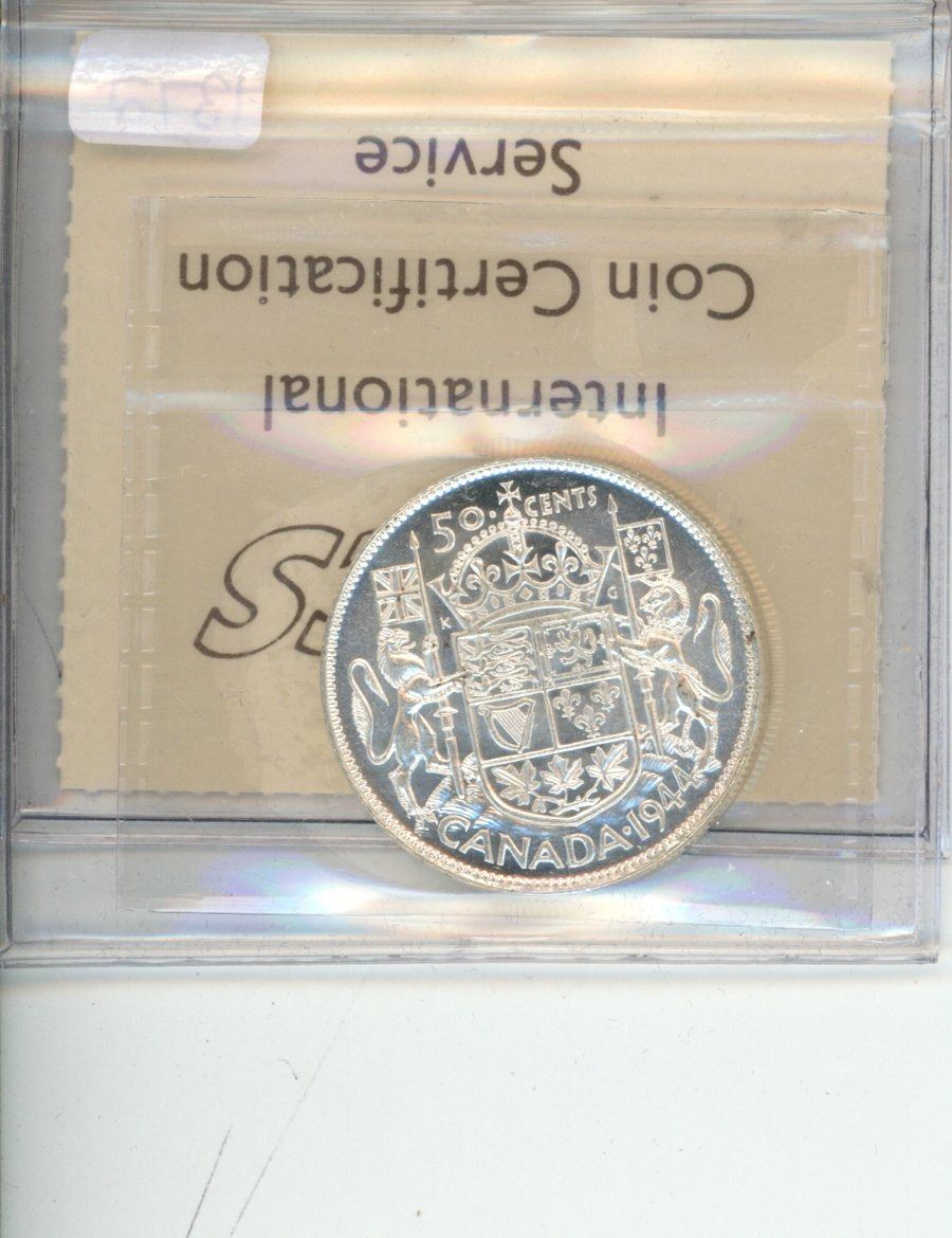 1944 ICCS graded, Canadian silver 50 cent coin - MS60 Near 4
