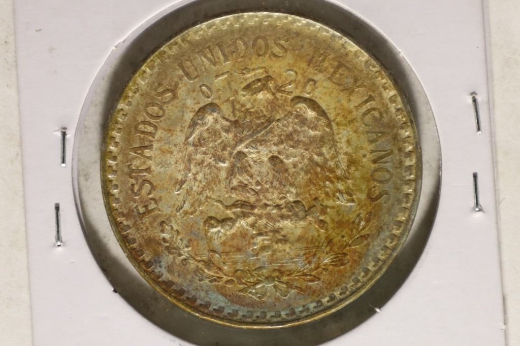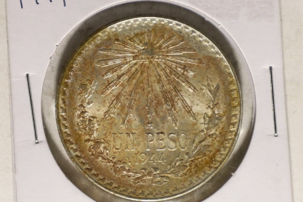 1944-M MEXICO SILVER CAP & RAYS PESO, .3857 OZ ASW