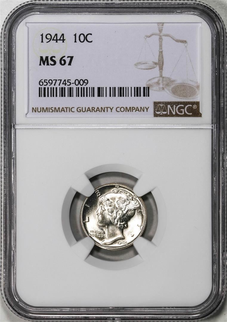 One 1944 Mercury Dime Coin NGC MS67. NGC Certified.