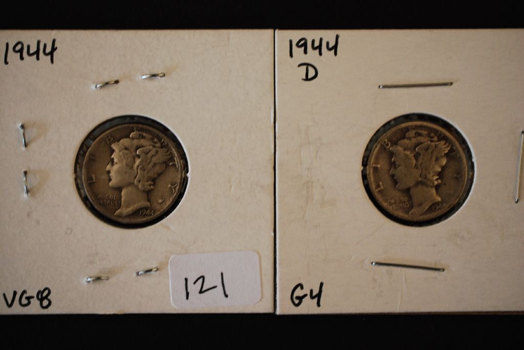 1944 Mercury Dime; VG8 & 1944-D Mercury Dime; G4; Lot of 2; EST. $20-30