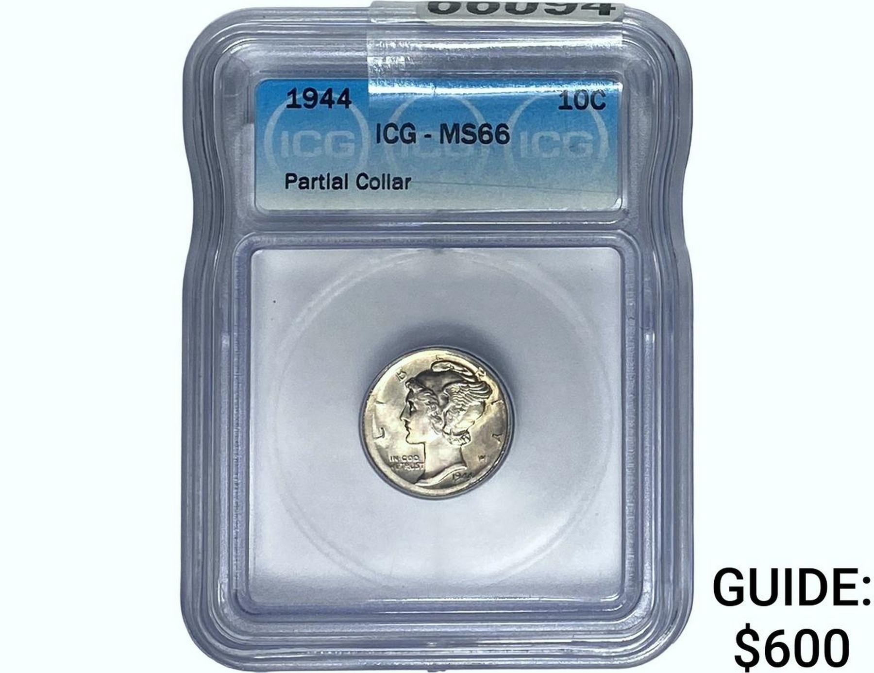 1944 Mercury Silver Dime ICG MS66 Partial Collar