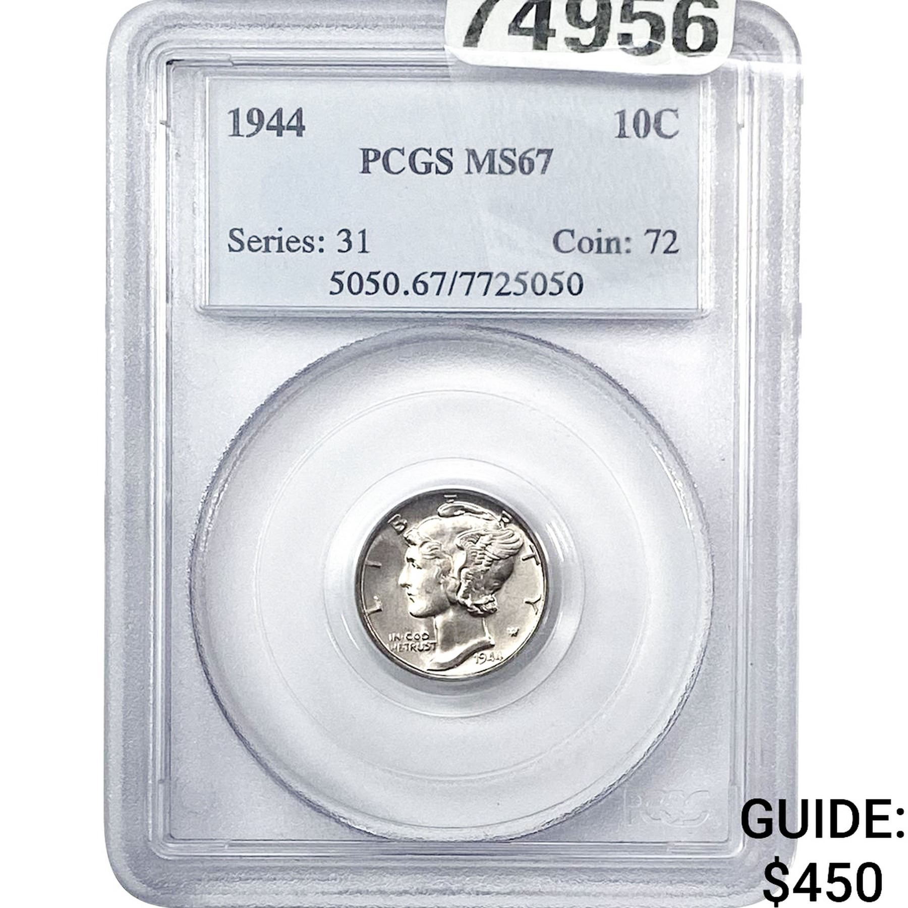 1944 Mercury Silver Dime PCGS MS67