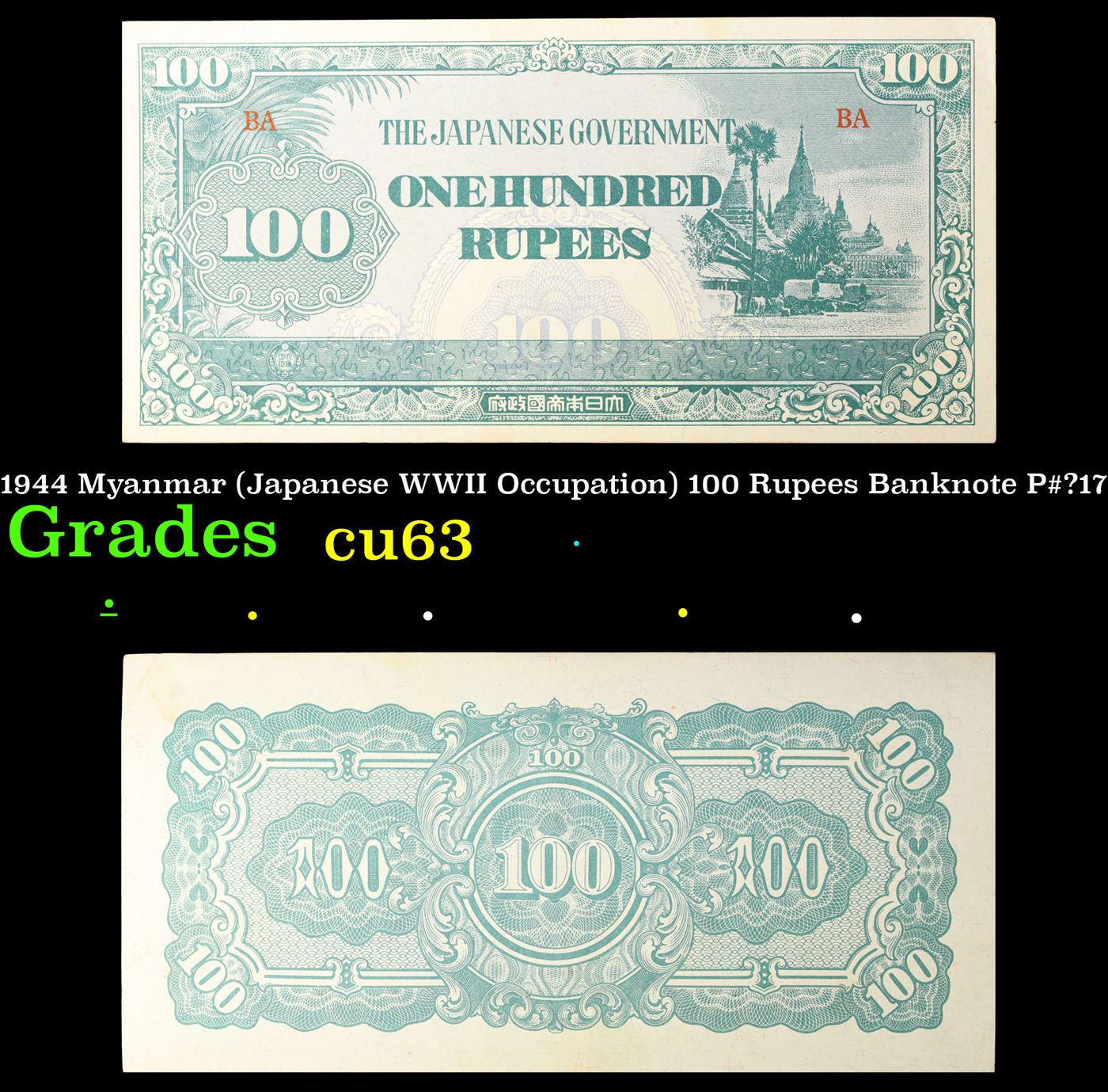 1944 Myanmar (Japanese WWII Occupation) 100 Rupees Banknote P#?17 Grades Select CU