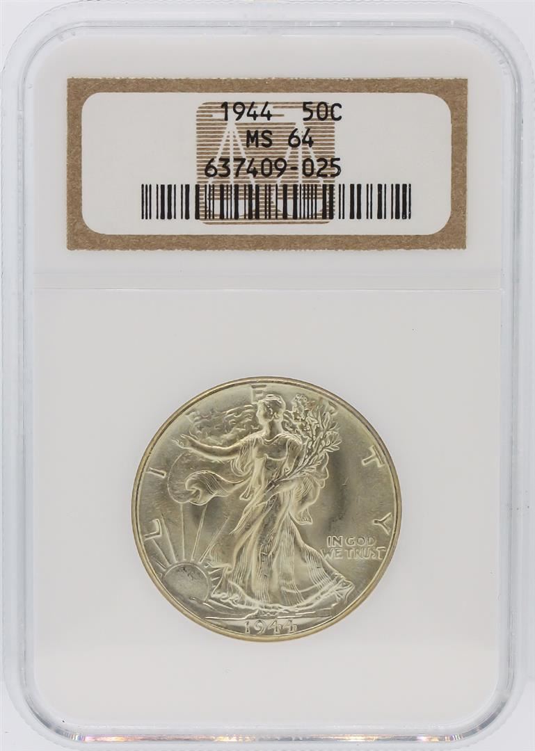 One 1944 NGC Graded MS64 Walking Liberty Half Dollar Silver Coin. NGC Certified.