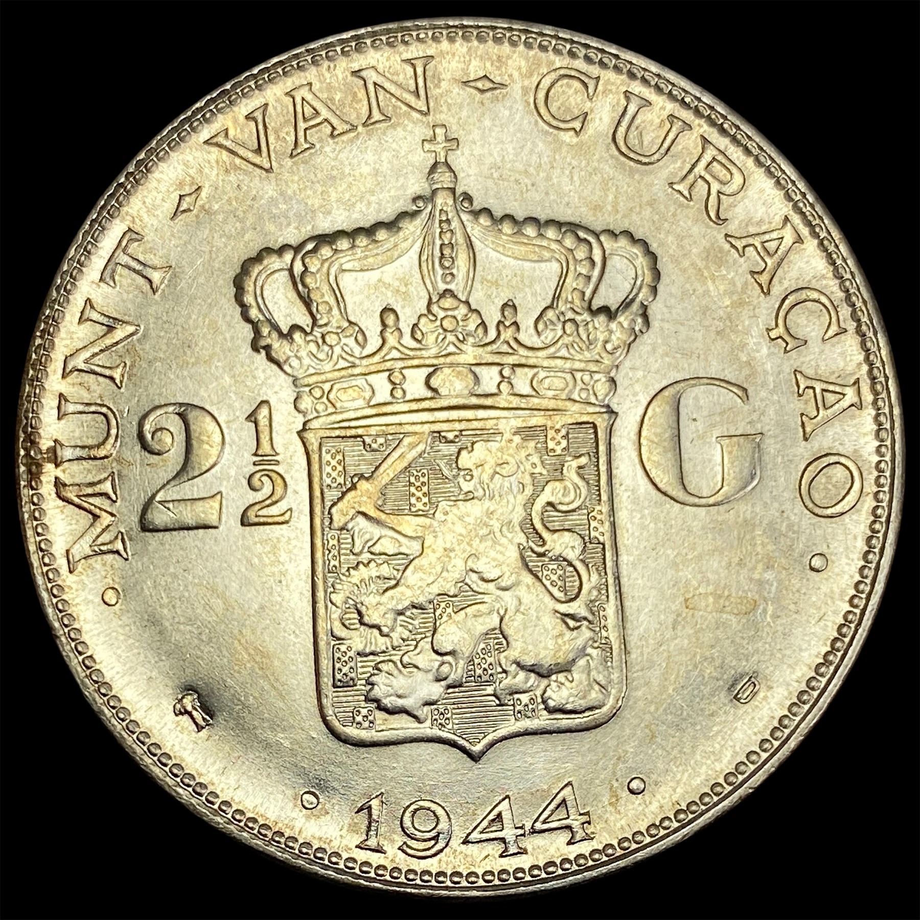 1944 Netherlands Silver 2 1/2 Gulden UNCIRCULATED