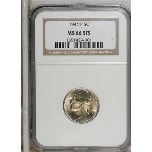 <B>1944-P 5C MS66 Full Steps NGC.</B></I> NGC Census: (29/7). PCGS Population (132/8). (#84022)<BR><BR><b>Shipping:</b> Coins & Currency (<a target="_blank" href="http://www.heritageauctions.com/common/shipping.php">view shipping information</a>)