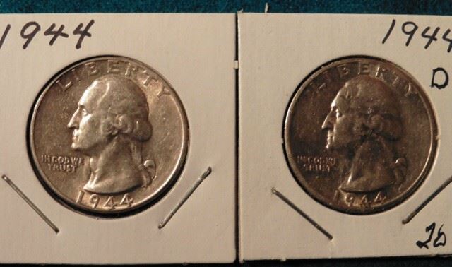 1944 P & D Washington Quarters. AU-BU. Red Book value $15-30.00.