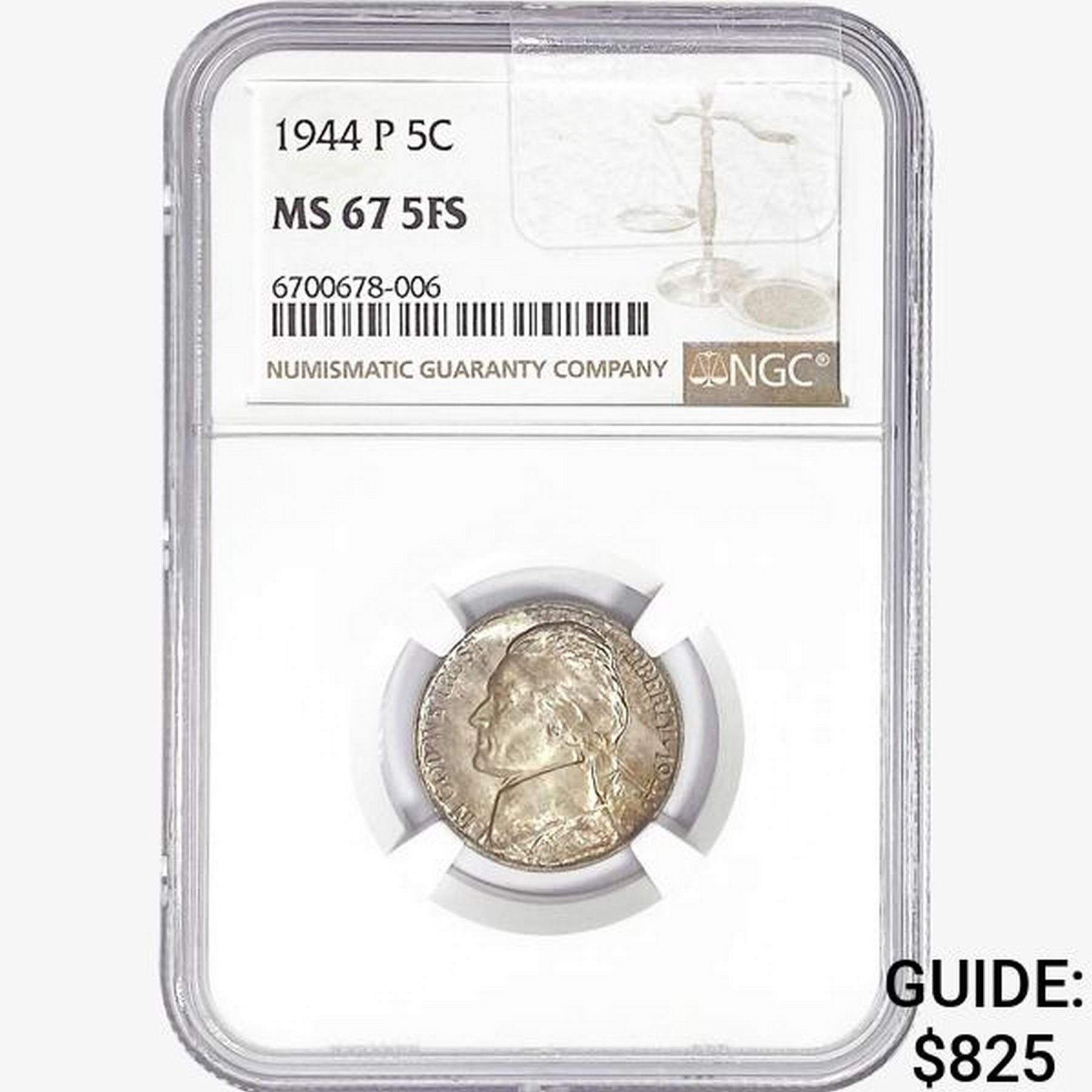 1944-P Jefferson Nickel NGC MS67 5FS