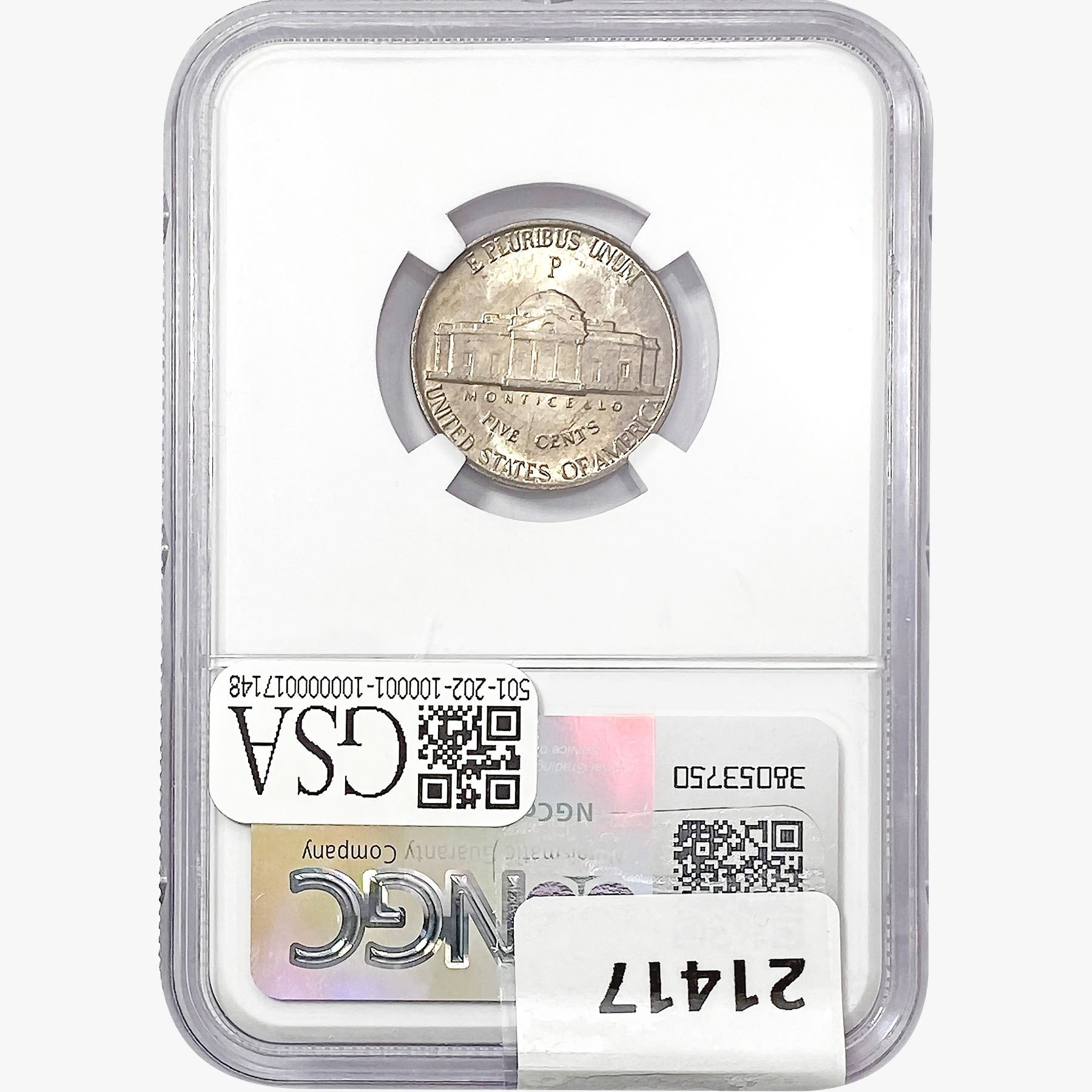 e. Coins sold referencing a third-party grading service are sold “AS IS” without any express or implied warranty, except for a guarantee by GSA that they are genuine. Removal or alteration of the holder, voids all of Bidder’s claims concerning that Product. Certain warranties may be available from the grading services and Bidders are referred to them for further details: Numismatic Guaranty Corporation (NGC), PO Box 4776, Sarasota, FL 34230, www.ngccoin.com/services/writtenguarantee.asp; Professional Coin Grading Services (PCGS), PO Box 9458, Newport Beach, CA 92658, www.pcgs.com/guarantee.html; ANACS, 6555 S. Kenton St., Ste. 303, Englewood, CO 80111; and Independent Coin Grading Co. (ICG), 7901 East Bellview, Ave., Suite 50, Englewood, CO 80111.