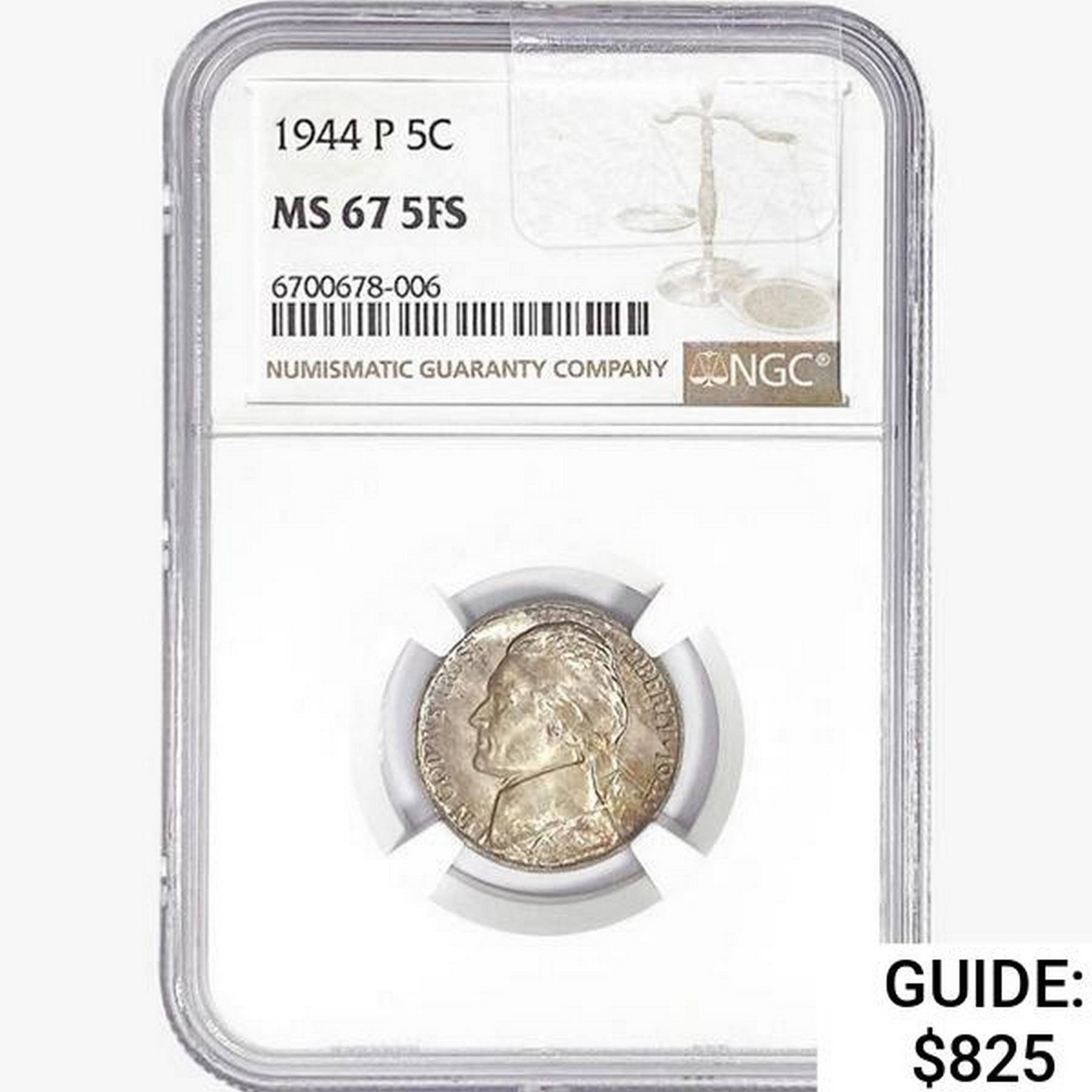 1944-P Jefferson Nickel NGC MS67 5FS