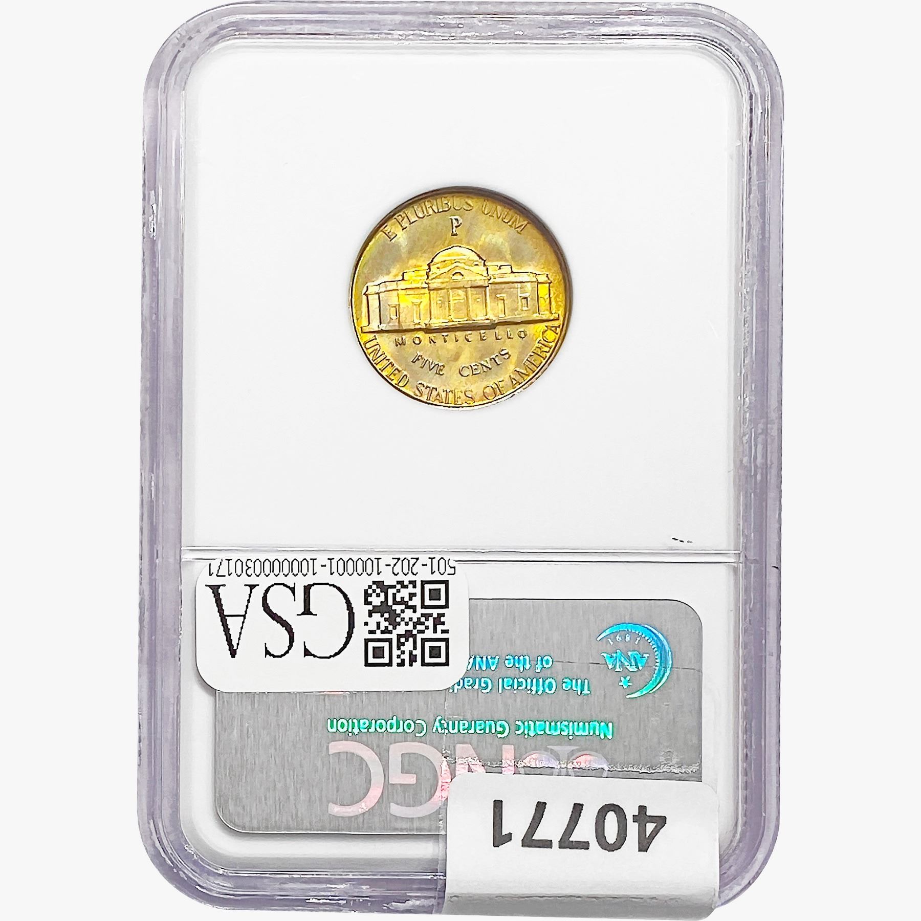 e. Coins sold referencing a third-party grading service are sold “AS IS” without any express or implied warranty, except for a guarantee by GSA that they are genuine. Removal or alteration of the holder, voids all of Bidder’s claims concerning that Product. Certain warranties may be available from the grading services and Bidders are referred to them for further details: Numismatic Guaranty Corporation (NGC), PO Box 4776, Sarasota, FL 34230, www.ngccoin.com/services/writtenguarantee.asp; Professional Coin Grading Services (PCGS), PO Box 9458, Newport Beach, CA 92658, www.pcgs.com/guarantee.html; ANACS, 6555 S. Kenton St., Ste. 303, Englewood, CO 80111; and Independent Coin Grading Co. (ICG), 7901 East Bellview, Ave., Suite 50, Englewood, CO 80111.