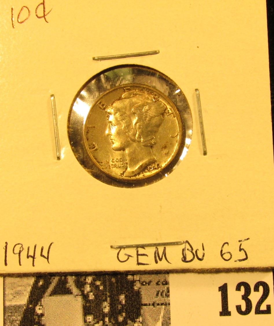 1944 P Mercury Dime GEM BU 65. Superb original toning.