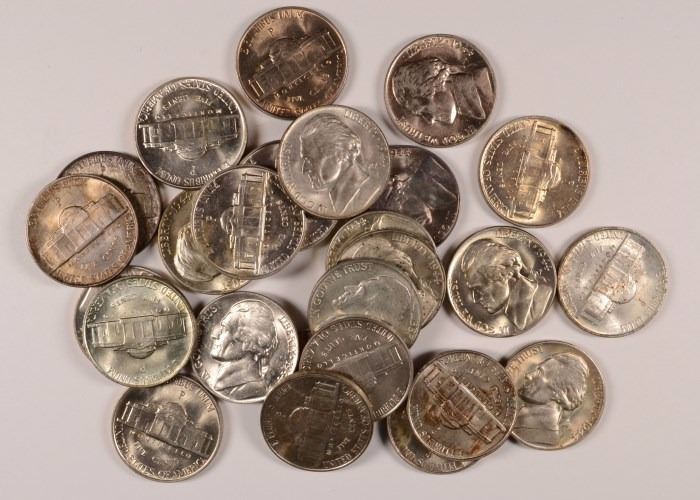 1944-P SILVER JEFFERSON NICKELS, 26 COINS, GEM BU