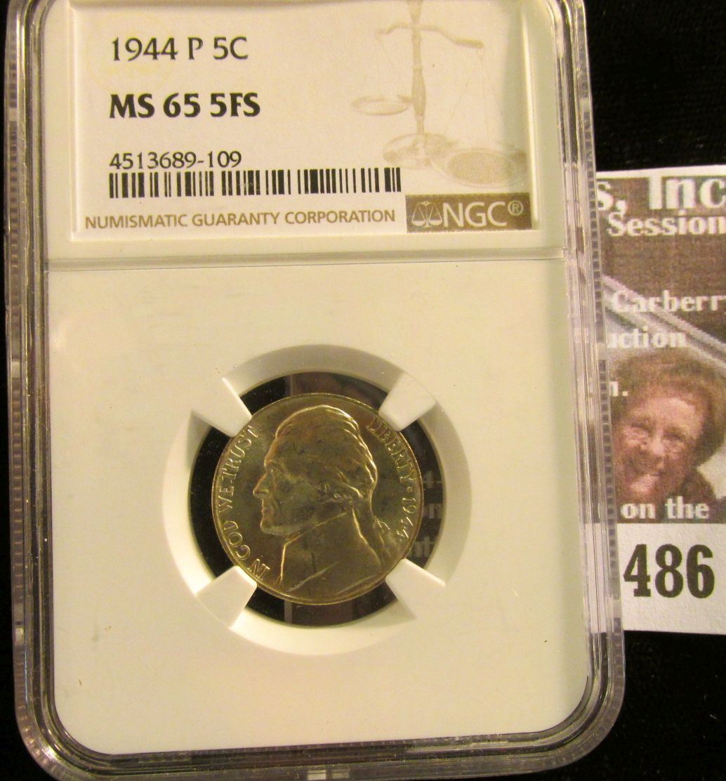 1944 P Silver World War II Nickel. NGC slabbed "MS 65 5FS".