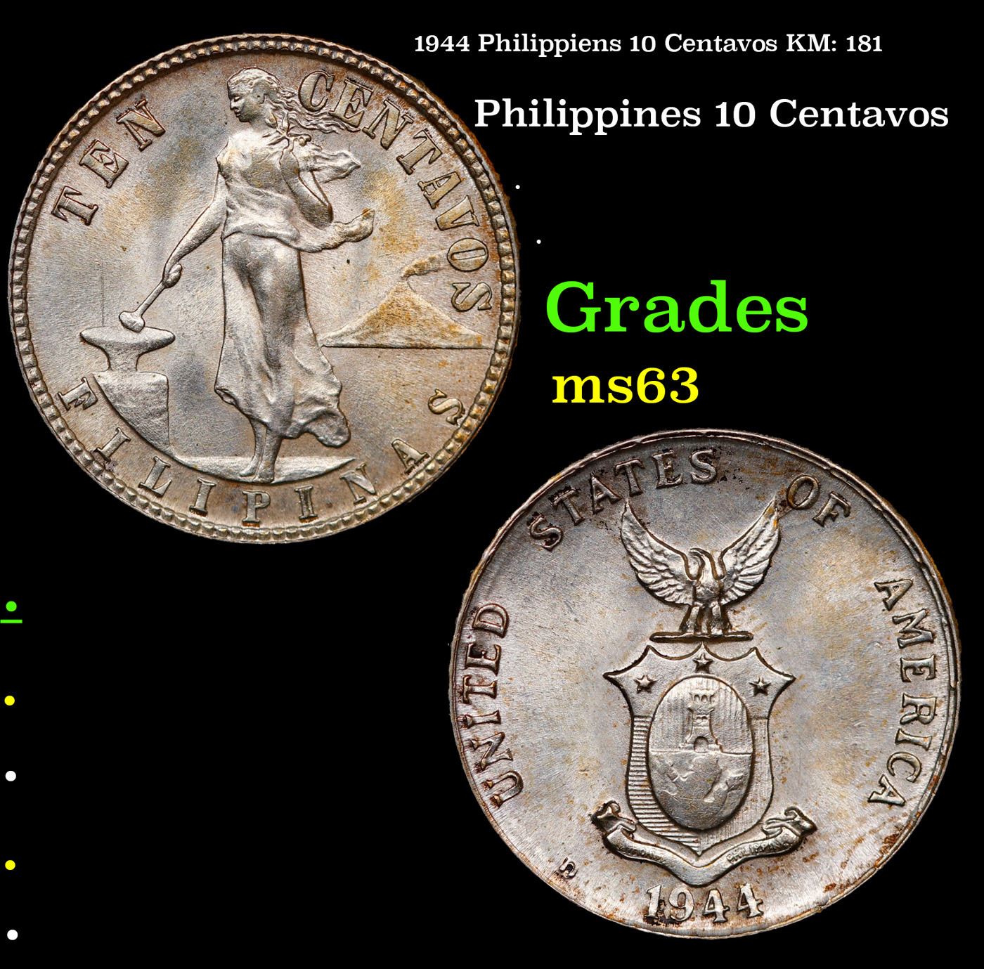 1944 Philippiens 10 Centavos KM: 181 Grades Select Unc.