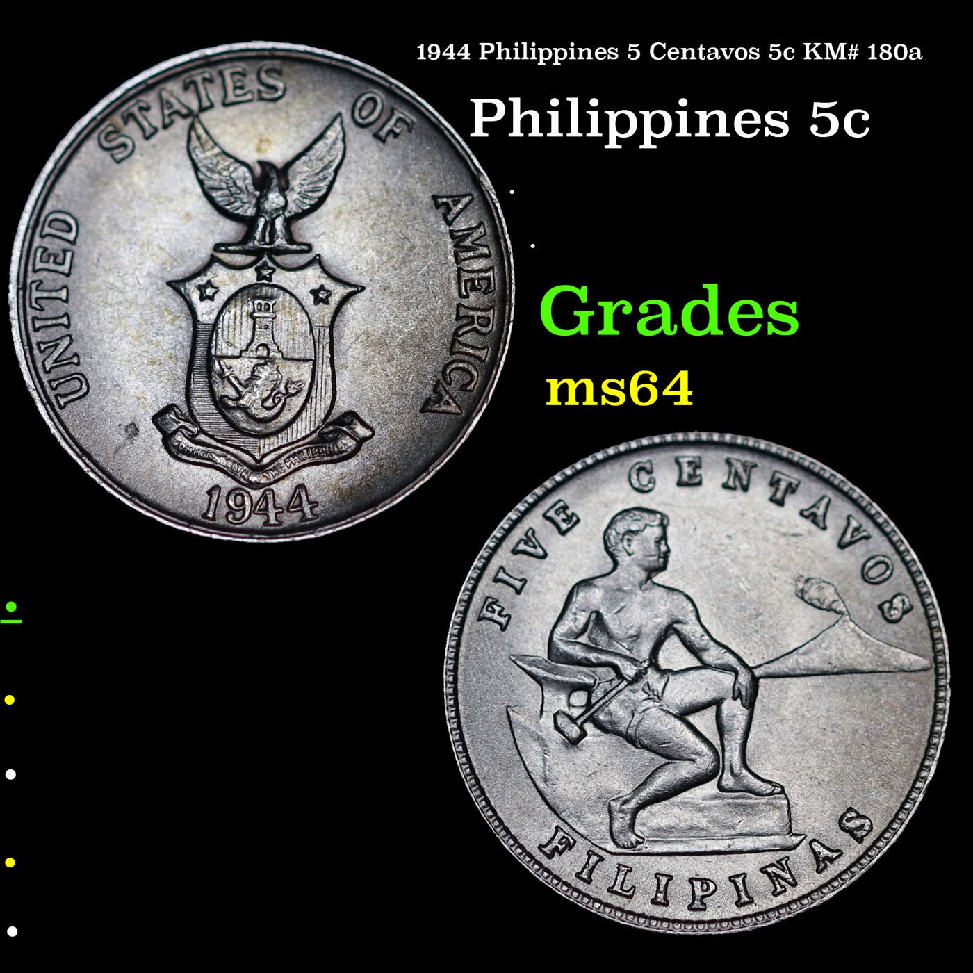 1944 Philippines 5 Centavos 5c KM# 180a Grades Choice Unc.