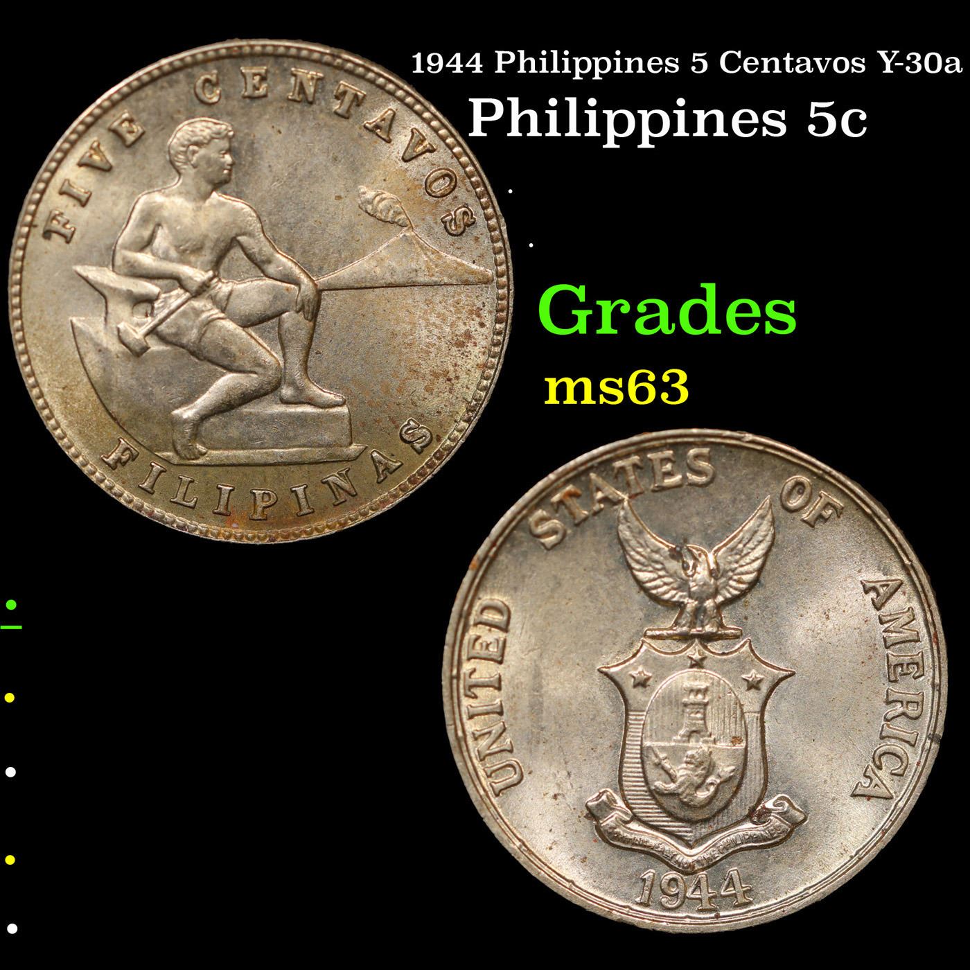 1944 Philippines 5 Centavos Y-30a Grades Select Unc.