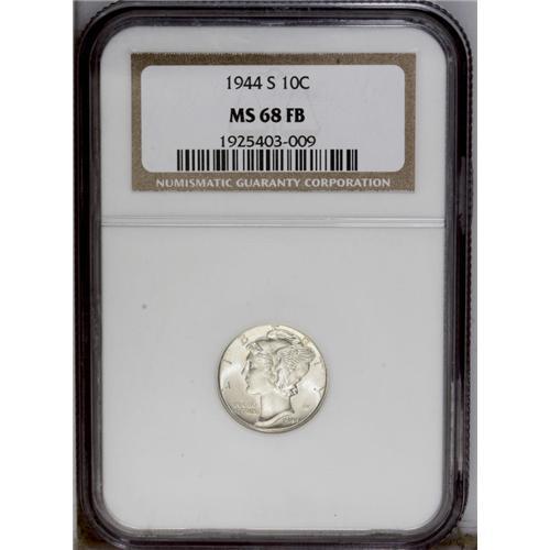 <B>1944-S<10C> MS68 Full Bands NGC.</B></I> This is one of the finest existing examples of the date, with a limited population of just five coins certified by NGC (3/06). The surfaces are brilliant and lustrous with no evidence of toning on either side.