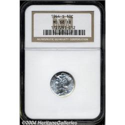 <B>1944-S<10C> MS68 Full Bands NGC.</B></I> Large S mintmark. This brilliant, lustrous, and well struck example has essentially immaculate preservation. Population: 3 in 68, 0 finer (4/04). <BR><BR><B>Important notice:</B> Heritage usually auctions material at the rate of 200-250 lots per hour. On some occasions eBay Live bid software or the Internet may not be able to keep up with the pace of the auction. We recommend placing a realistic absentee bid now as insurance to avoid disappointment. Occasionally the auctioneer may eliminate or reject an eBay Live bid, and the auctioneer may also reopen a lot after the close of the eBay live bidding (usually because we missed an audience bid), and may reject your bid even if it shows you as the winning bidder. By bidding via eBay Live, you agree that Heritage may award the lot to another bidder at its sole discretion under the circumstances described above or any other reasonable circumstances. Since eBay bids are not shown to us until we open the lot on the floor, we treat those bids just like floor bids. In most cases the floor responds before the eBay bid is presented to us, due to Internet lag time, so for consistency we have made it a policy that floor bids are always considered first over tie eBay live bids. Also please note that all Heritage lots purchased through eBay Live carry a 20% Buyer's Premium. Please make sure you read the Terms and Conditions before you bid.