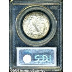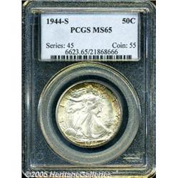 <B>1944-S 50C MS65 PCGS.</B></I> Large S. Beautiful ruby-red, sea-green, and gold colors alternate across the obverse border. Lustrous and unmarked with the usual strike on Liberty's head and branch hand.