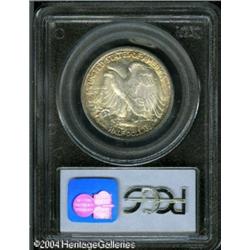 1944-S 50C MS65 PCGS. Lustrous surfaces are visite <B>1944-S 50C MS65 PCGS.</B></I> Lustrous surfaces are visited by speckled golden-brown and light blue toning around the peripheries. Generally adequately struck, except for weakness in the centers. Minimal abrasions are noted. <BR><BR><B>Important notice:</B> Heritage usually auctions material at the rate of 200-250 lots per hour. On some occasions eBay Live bid software or the Internet may not be able to keep up with the pace of the auction. We recommend placing a realistic absentee bid now as insurance to avoid disappointment. Occasionally the auctioneer may eliminate or reject an eBay Live bid, and the auctioneer may also reopen a lot after the close of the eBay live bidding (usually because we missed an audience bid), and may reject your bid even if it shows you as the winning bidder. By bidding via eBay Live, you agree that Heritage may award the lot to another bidder at its sole discretion under the circumstances described above or any other reasonable circumstances. Since eBay bids are not shown to us until we open the lot on the floor, we treat those bids just like floor bids. In most cases the floor responds before the eBay bid is presented to us, due to Internet lag time, so for consistency we have made it a policy that floor bids are always considered first over tie eBay live bids. Also please note that all Heritage lots purchased through eBay Live carry a 20% Buyer's Premium. Please make sure you read the Terms and Conditions before you bid. This lot is being auctioned in conjunction with a live floor auction by Heritage Galleries & Auctioneers. All final auction and invoice information will be supplied by Heritage Galleries & Auctioneers, and all other information should be considered preliminary. Lot:6252