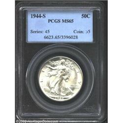 1944-S 50C MS65 PCGS. While the surfaces are essentially as struck, this lustrous Gem is kept from a