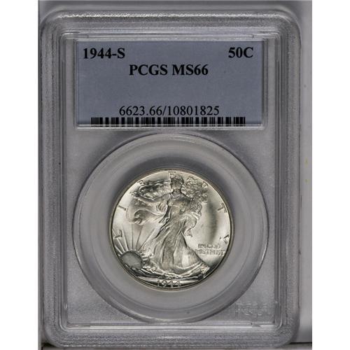 <B>1944-S<50C> MS66 PCGS.</B></I> Large S. A lustrous, virtually brilliant, and delightfully undisturbed Premium Gem. Well struck on the skirt lines, while the branch hand and Liberty's head show expected slight weakness.