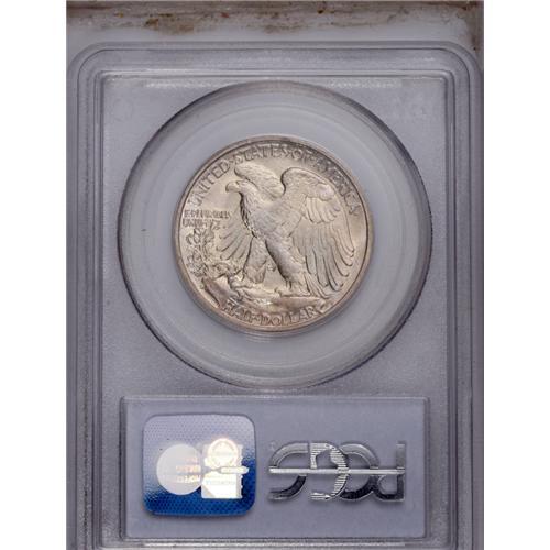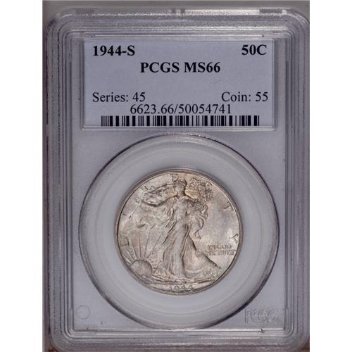 <B>1944-S<50C> MS66 PCGS.</B></I> Large S. Gently dappled lilac and beige patina overlays lustrous surfaces. A decent strike for an S-mint Walker, although the highpoints of Liberty are not absolute. A few minute obverse marks do not distract.