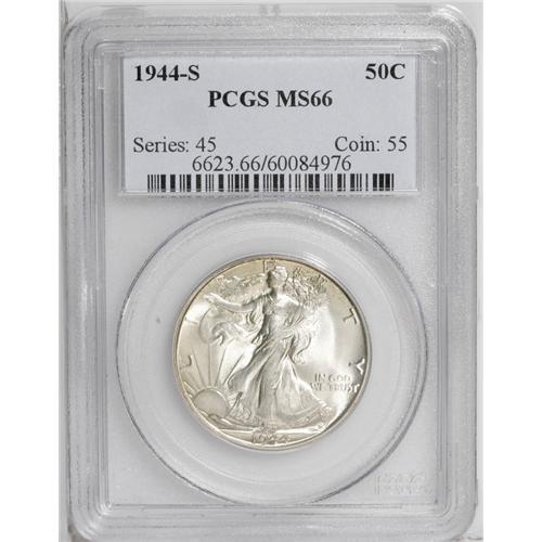 <B>1944-S<50C> MS66 PCGS.</B></I> Large S. Light golden toning visits this gorgeously preserved and lustrous Premium Gem. The strike is decidedly above average for this often mushy issue. PCGS has certified just five pieces finer (6/06).
