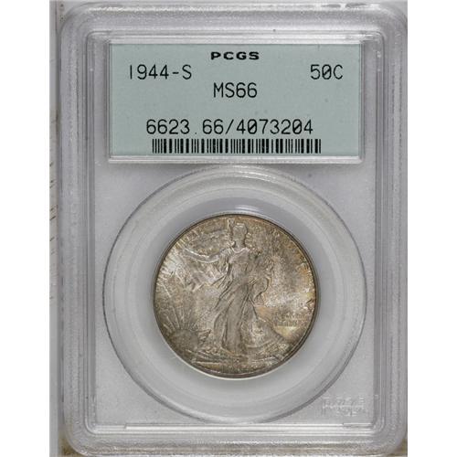 1944-S 50C MS66 PCGS. Moderate steel-gray and reddish-